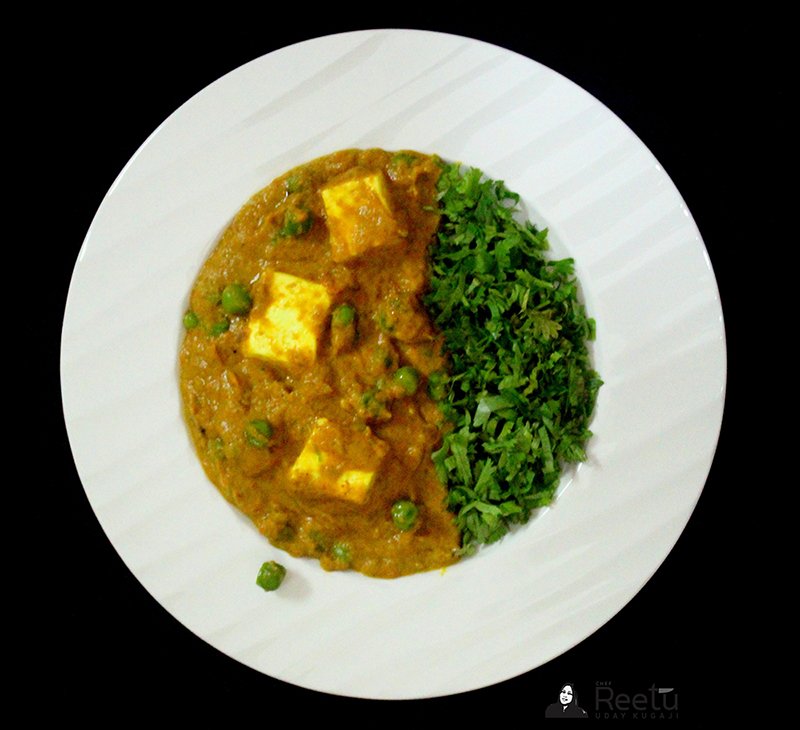 Stir Fried Cottage Cheese with green peas and Indian spices in delectable creamy cashew nut and Saffron gravy.