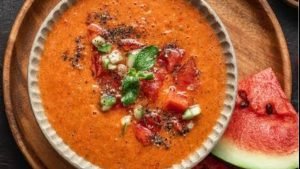Here’s a refreshing dish for those who think fruits are just fruits. Start by cutting and deseeding watermelons as needed. Blend the watermelons with some fresh mint. In a pan, heat olive oil with chili and ginger garlic paste, then pour in the blended mixture. Cook the puree on simmer until it thickens to your liking. Once it reaches the right consistency, turn off the heat and let it cool. Serve this chilled soup with ice cubes for a delightful twist on a summer day. Who says soup has to be hot all the time?